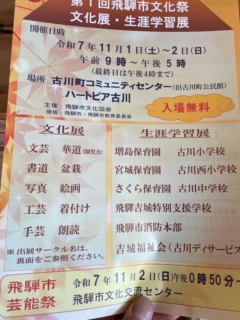 『第1回飛騨市文化祭 文化展・生涯学習展』を11月1日(土)、2日(日)に開催します!