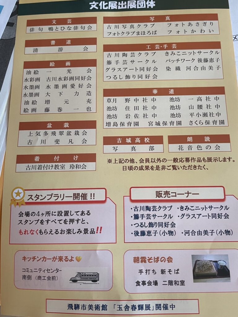 飛騨市文化協会で実施しているこの文化祭。協会のメンバーも高年齢の方が多く、準備や当日の運営もなかなかに大変になってきています。