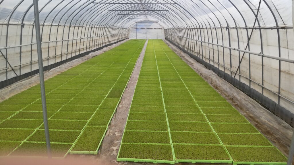 今回は世界最高米にも認定されたことのあるみつわ農園さんで苗箱並べ、苗の防除のヒダスケ!。